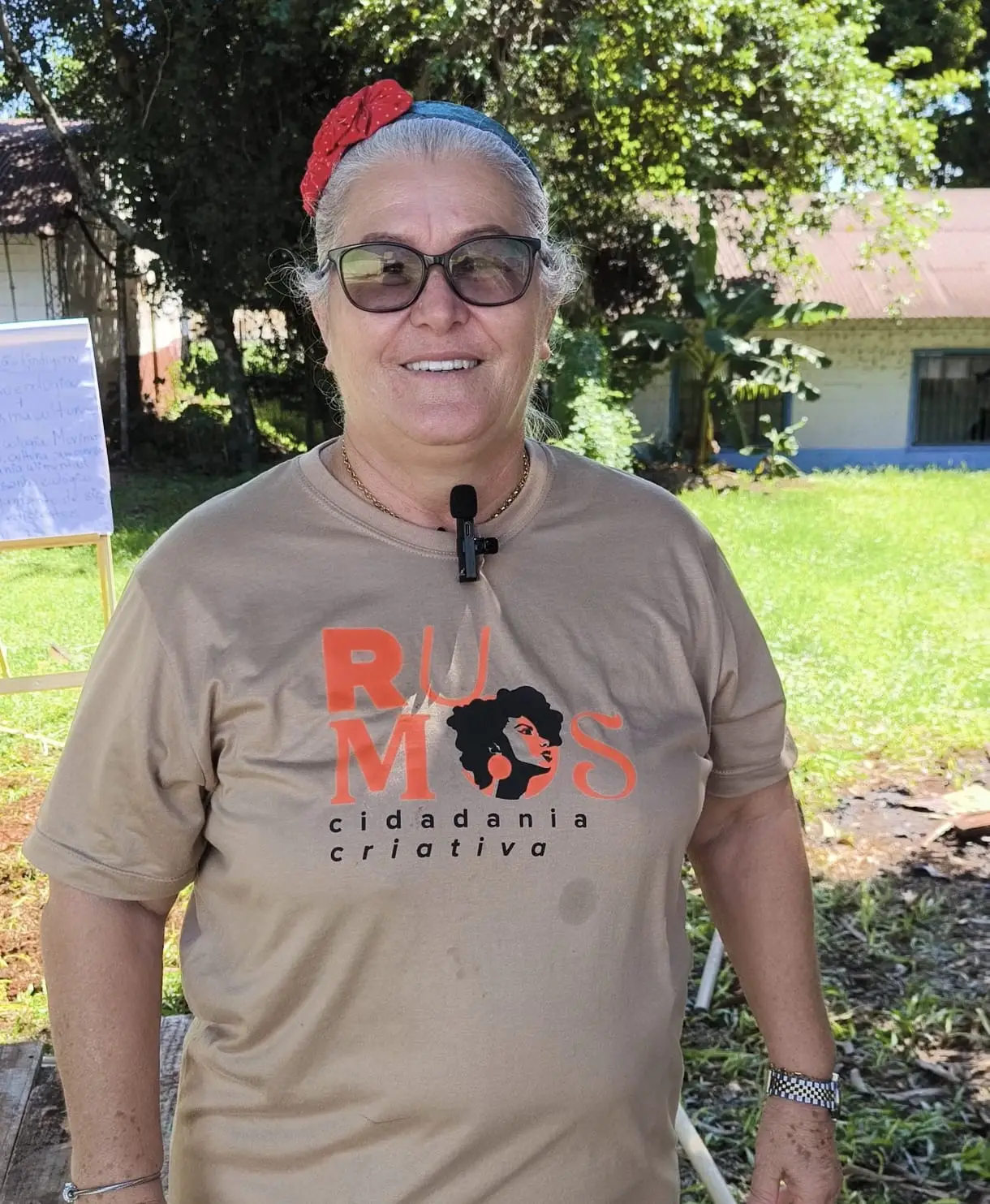 A poucos metros dali, Neide dos Santos, aluna de Permacultura e Sustentabilidade — com foco em hortas e compostagem — participava da aula prática e do preparo do solo do terreno que se transformará em uma mini agrofloresta.