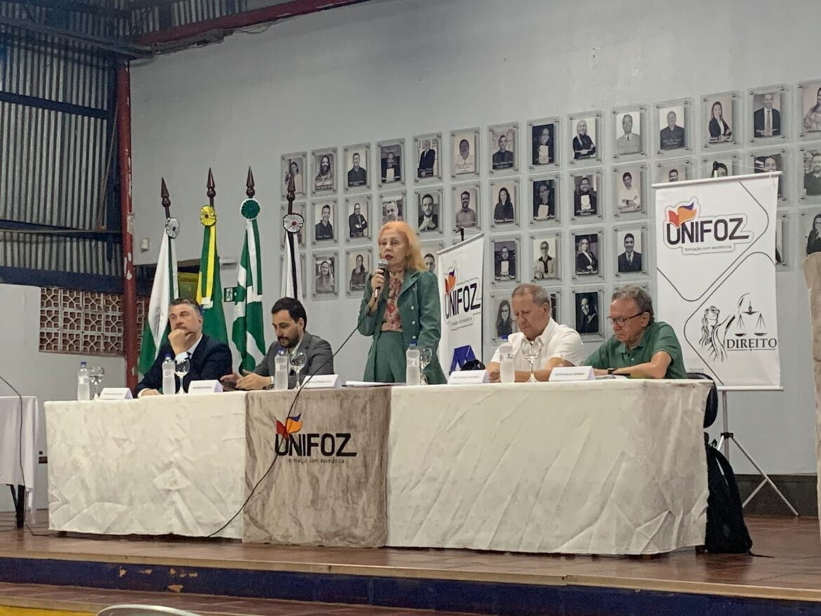 A mesa de abertura da Semana Acadêmica foi composta pela Diretora-Geral da Unifoz, Soraya Sotomaior Justus; pelo Diretor Acadêmico Conrado Sotomaior Justus Machado; pelo Procurador Geral do Município e Professor da Unifoz, Osli Machado; e pelo Presidente da Subseção local da OAB e Professor da Unifoz, Vitor Hugo Nachtygal. Essas personalidades reforçaram o papel da Unifoz como centro de formação de excelência, onde temas atuais e históricos são abordados em profundidade para a formação crítica dos alunos.