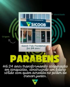 O Sicoob Três Fronteiras completa 24 anos, comemorando conquistas econômicas que garantem a solidez e o crescimento da cooperativa, além de resultados do trabalho social com a comunidade. É justiça financeira que transforma a vida das pessoas.